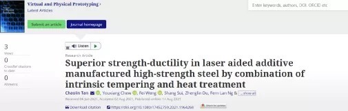 在此,新加坡制造技术研究院的谭超林带领团队研究了低成本的AISI 420高速钢采用粉末喷吹激光辅助增材制造(LAAM),其中IHT效应引起的内在回火促进了大量金属碳化物的内在形成,以及后热处理对LAMM材料组织和性能的影响。热处理后金属碳化物含量的增加以及纳米孪晶导致了广泛的高强度钢之间良好的强度-塑性组合。阐明了强度-塑性平衡的基本机理,突出了IHT在AM中原位回火沉积材料的能力,以提高强度-塑性组合。相关研究成果以题“Superior strength-ductility in laser aided additive manufactured high-strength steel by combination of intrinsic tempering and heat treatment”发表在增材顶刊Virtual and Physical Prototyping上。